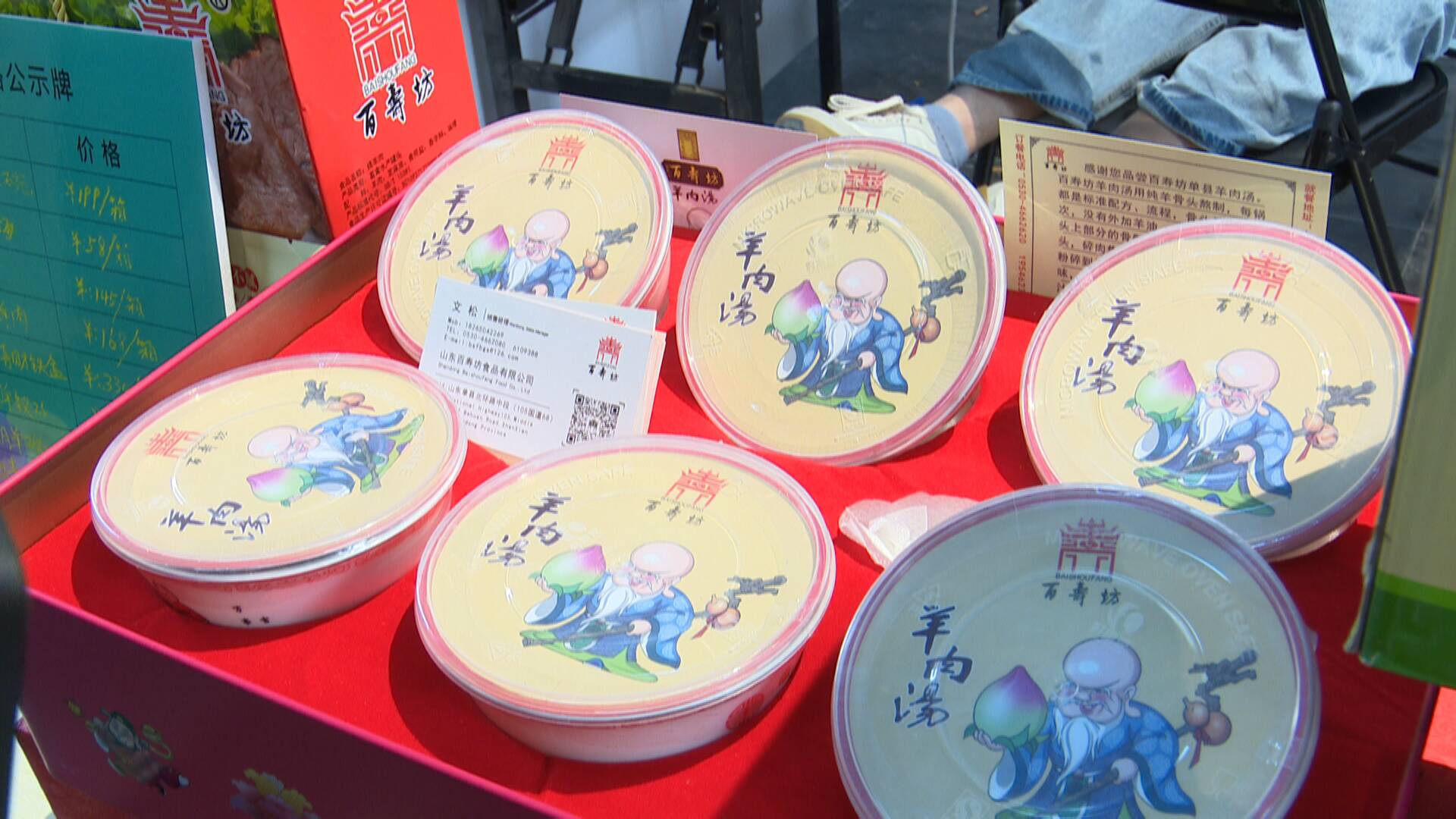 在花会展销现场,记者不仅看到了传统现熬的羊肉汤,还发现了盒装、速食装的“方便羊肉汤”。山东百寿坊食品有限公司推出的羊肉汤罐头、固体羊肉汤、休闲肉类等三大系列二十多个品种,让外地游客也能将“中华第一汤”带回家。