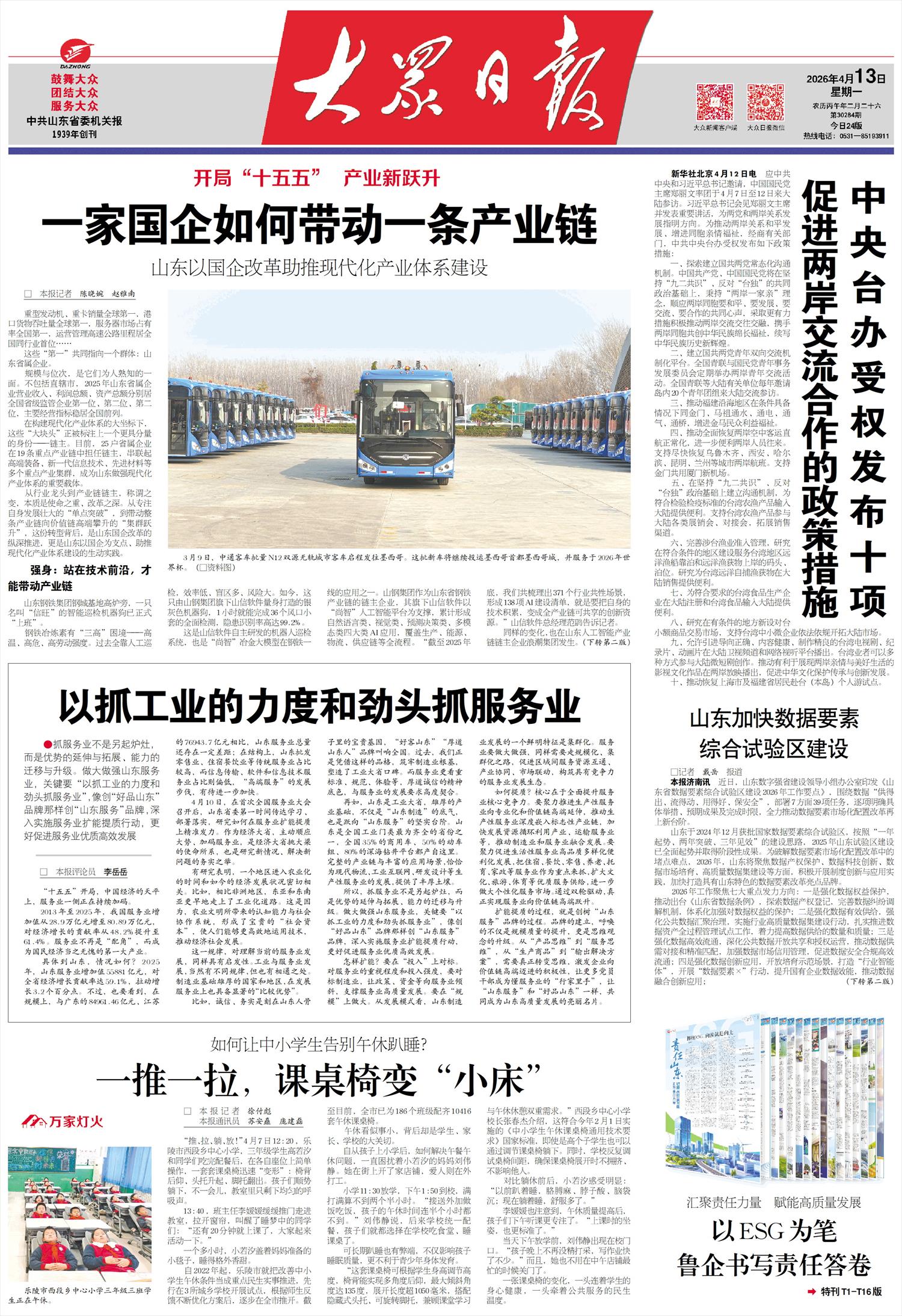 本报济南讯 近日,山东数字强省建设领导小组办公室印发《山东省数据要素综合试验区建设2026年工作要点》,围绕数据“供得出、流得动、用得好、保安全”,部署7方面39项任务,逐项明确具体举措、预期成果及完成时限,全力推动数据要素市场化配置改革再上新台阶。