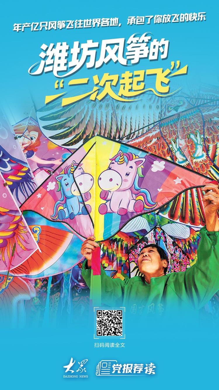 如今,潍坊风筝产业规模日渐壮大:全市拥有600多家风筝相关企业,全产业链年产值突破100亿元,直接带动就业超10万人;风筝主题旅游年接待游客超200万人次,200余款文创产品年产值突破5亿元;风筝文化出海,遍及全球30多个国家和地区。